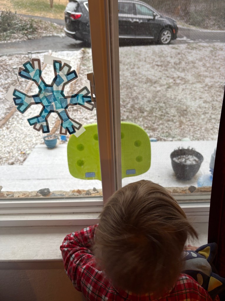 We went to bed not expecting to see any actual snow on the ground (maybe some sleet) at any point in the two-day weather event. When my husband awoke early Saturday morning, he went to the bathroom, climbed back in bed and whispered, “It’s snowing.” I thanked God that my kids would see some snow after all, even as I drifted back to sleep.